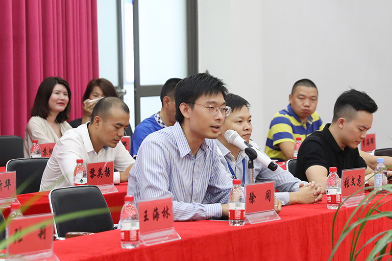 在座談上,正業科技總裁助理徐同表達了對東莞市經信局領導和總裁班企業家蒞臨我司的熱烈歡迎和感謝,簡述正業科技一路走來,能有今天的輝煌成就,實屬不易,但前方的路還很長,今后仍不忘初心,繼往開來,再創輝煌。