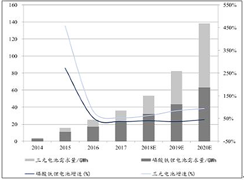 動(dòng)力電池需求量逐年攀升,預(yù)計(jì)2020達(dá)138GWh