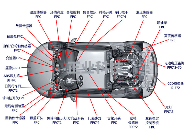 整車FPC用量將超過100片,動力電池需求FPC數(shù)量與面積遠(yuǎn)超原有整車車載FPC,新能源汽車的大發(fā)展帶動車載動力電池用FPC需求大幅增長。
