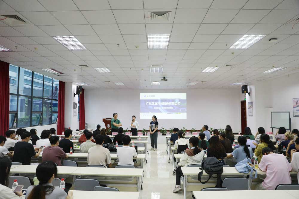 東莞理工學院師生一行率先參觀了正業科技展廳,總裁辦滕娟主任為大家詳細介紹了正業科技發展歷程、行業布局、重點產品以及創新技術等情況。隨后,大家來到生產車間,了解到了正業科技設備的先進性及生產工藝的創新性。