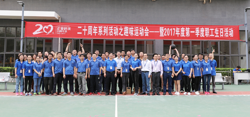 2017年4月8日,廣東正業(yè)科技股份有限公司盛大舉辦了二十周年系列活動之趣味運動會暨2017年度職工生日活動,公司董事長徐地華先生等公司高層管理人員和所有員工參加了趣味運動會。